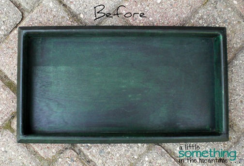 I started with a wooden tray from Goodwill that was just waiting for its next life. I bought it at the same time as this tray that already received a “Cinderella makeover.”